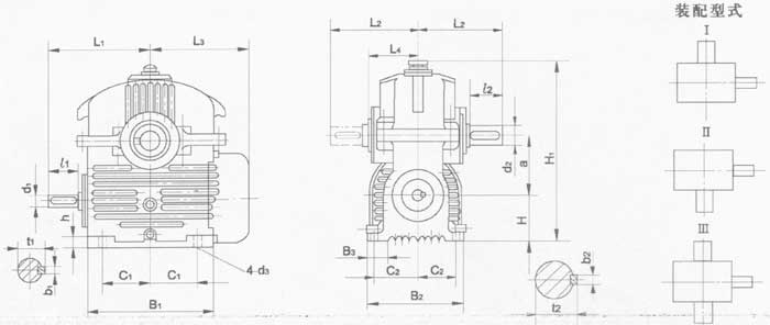 (2)HWB型一蝸桿在蝸輪之下鑄造機體和機蓋直廓環面蝸桿減速器;