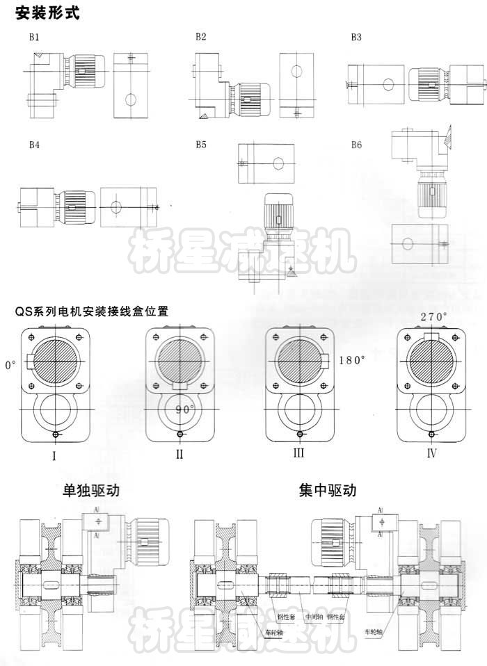 QS/QSC/QSF/QSK型三合一減速機融減速器、電動機、制動器與一體,結構緊湊,安裝使用、維修便利,可根據各自的使用要求選配電動機,輸出型式為漸開線花鍵、平鍵空心軸及實心軸等,既可單端輸出,亦可雙端輸出。QS、QSF型為平行軸式減速機,適用于單、雙梁橋工起重機的大、小車運行機構及冶金行業軋機、連鑄機的輥道驅動:QSC、QSK為垂直軸式減速機,適用 于門式起重機的大車運行機構及有空間位置限制要求的其他傳動機構。