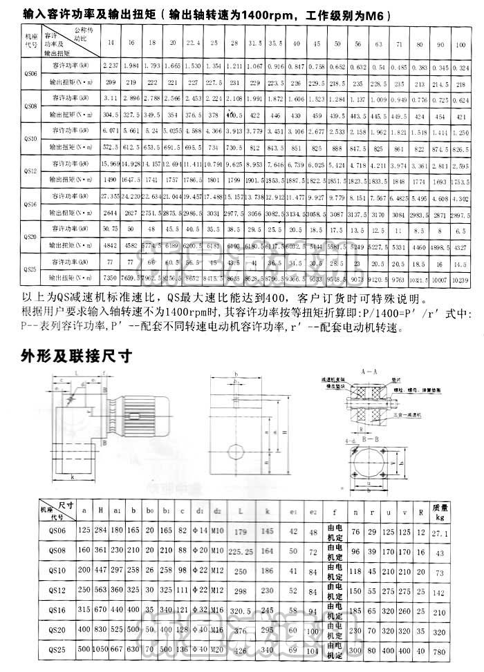 本樣本專門針對起重運輸機械行業編制,已充分考慮起重運輸機械行業的產品特性,工程技術人員可根據主機設備的運行速度和所需要的扭矩或功率在輸入功率及輸出扭矩表中對應不同的機型按1:1選用所需配套的機型(已經考慮了安全系數n=2)。只要您選用的機型其配套電機功率≤容許功率就能滿足您的使用需要。