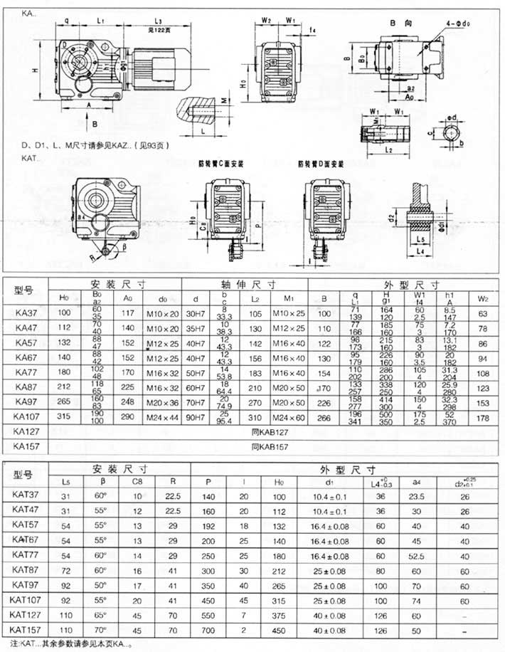 K-軸伸式、底腳安裝 KA-軸裝式聯接