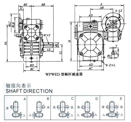 WPWED型蝸桿減速器主要尺寸 /mm