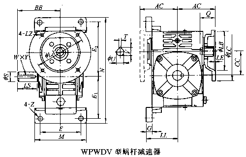 WPWDV40、WPWDV50、WPWDV60、WPWDV70、WPWDV80、WPWDV100、WPWDV120、WPWDV135、WPWDV155、WPWDV175、WPWDV200、WPWDV250、型蝸輪蝸桿減速器主要尺寸