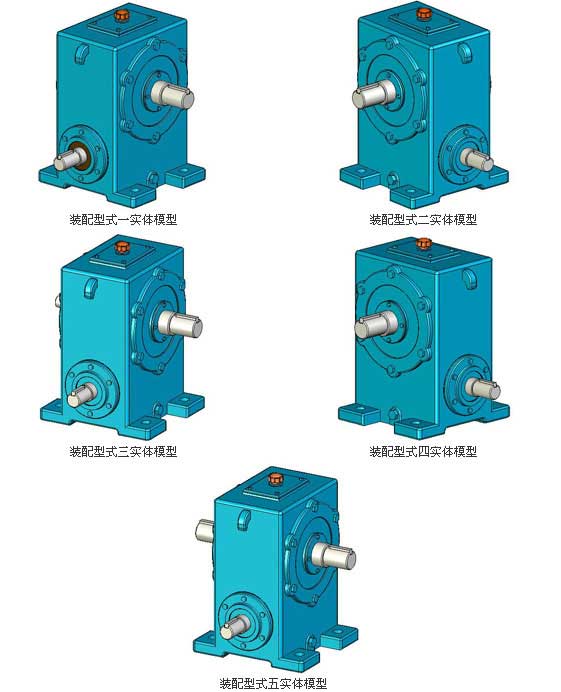 圓柱蝸桿減速器的標記包括:型號、中心距、傳動比、裝配型式