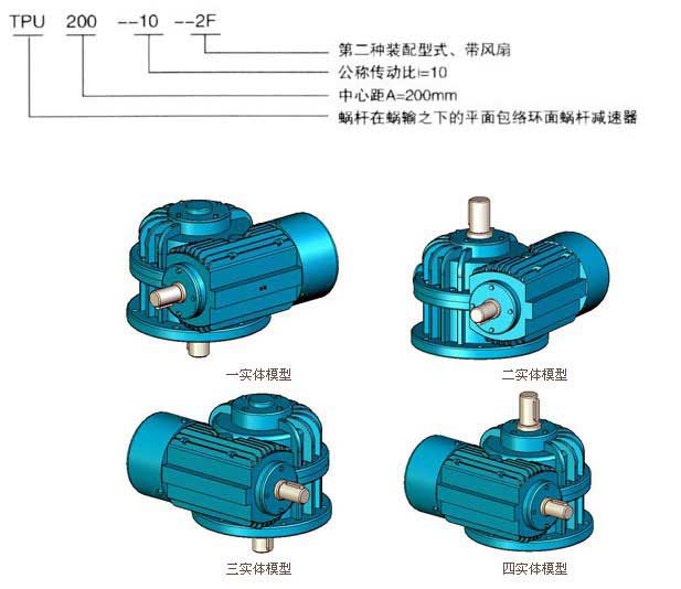 該減速器系列有四種型式:TPG、TPU、TPA、TPS 其中TP-平面包絡(luò)環(huán)面蝸桿組合為